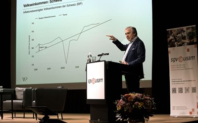 - Sind wir in einer Rezession? Schlitteln wir in eine hinein? Klaus Wellershoff leitete mit der Frage ein. Welche Konsequenzen Verbände daraus ableiten, erläutern ihre Vertreter in einem Podium. sgv Präsident Fabio Regazzi diskutiert über den Sinn der Verbandsarbeit.